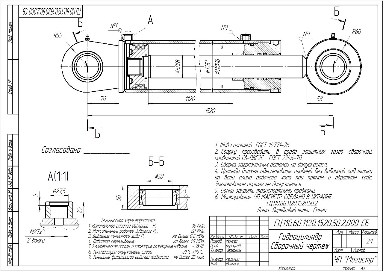 Гидроцилиндр Гц 110.60.1120.1520.50.2 – это высококачественный гидроцилиндр с диаметром поршня 110 мм и диаметром штока 60 мм, предназначенный для использования в тяжелой технике и оборудовании. Рабочий ход штока составляет 1120 мм, а размер в сложенном состоянии по осям крепления равен 1520 мм. Гидроцилиндр имеет максимальное давление 20 МПа и номинальное давление 16 МПа. Эта модель гидроцилиндра может использоваться в различных моделях коммунальной и уборочной техники, в зависимости от требований к гидравлической системе конкретной модели.