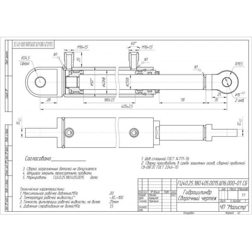 Гидроцилиндр 40.25.180.405.0015 Магистр®