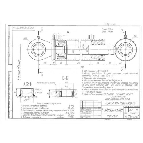 Гидроцилиндр 80.50.400.700.40 Магистр®