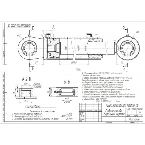 Гидроцилиндр 80.50.800.1100.40 Магистр®