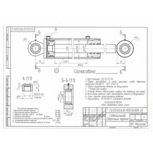 Гидроцилиндр 125.60.630.1100.50 Магистр®