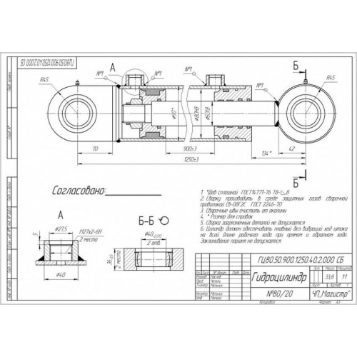 Основные характеристики гидроцилиндра 80.50.900.1250.40.2