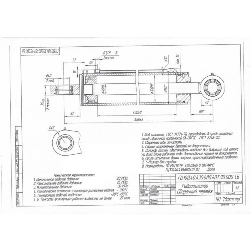 Гидроцилиндр 100.40.430.680.40Т.90 Магистр®