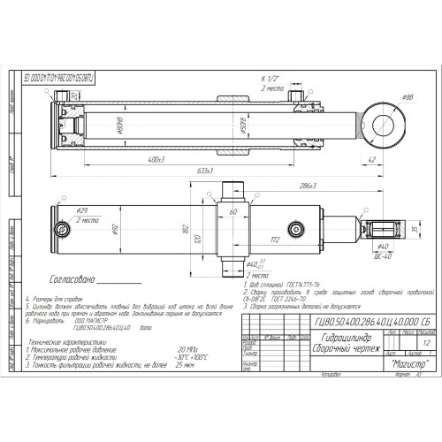 Основные характеристики гидроцилиндра 80.50.400.286.40Ц.40